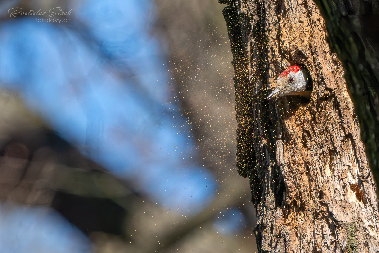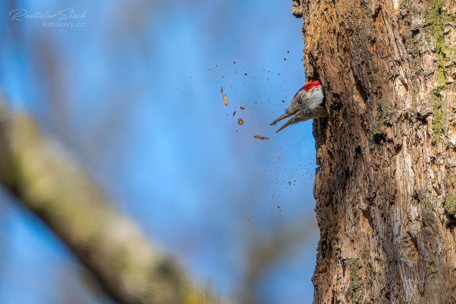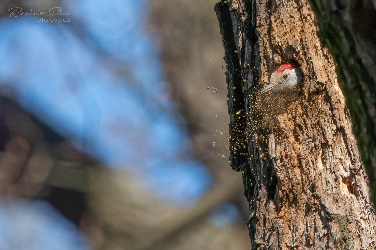 Čtvrtá návštěva lokality konečně přinesla úspěch a dneska jsem našel dutinu, kterou si strakapoudi připravují na hnízdění. Pro jistotu jsem je fotil z velké dálky, za použití telekonvertoru, abych je nerušil, ale byli v pohodě a i když kolem chodily skupinky lidí, klidně se u dutiny i pářili. Bohužel byli částečně schovaní za stromem, tak fotky nemám, ale hnízdění je teprve na začátku 😉